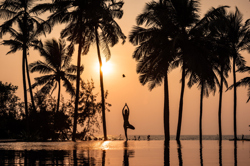 Her i vår oase i Kerala er man så heldig å kunne praktisere yoga i de vakreste naturomgivelser. omgitt av kokospalmer og avkjølt av en mild bris fra Arabiahavet.