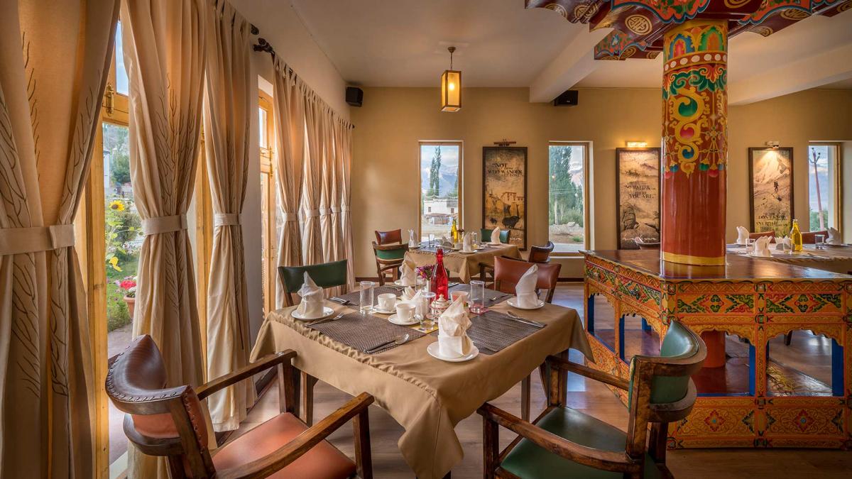 Hotel Chospa er en fredens oase midt i det pulserende sentrum av Leh. Her er tradisjonell ladakhisk arkitektur forenet med det moderne. Det føles nesten som man trer inn i naturen når man kommer inn i dørene.