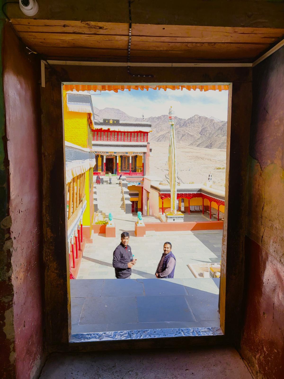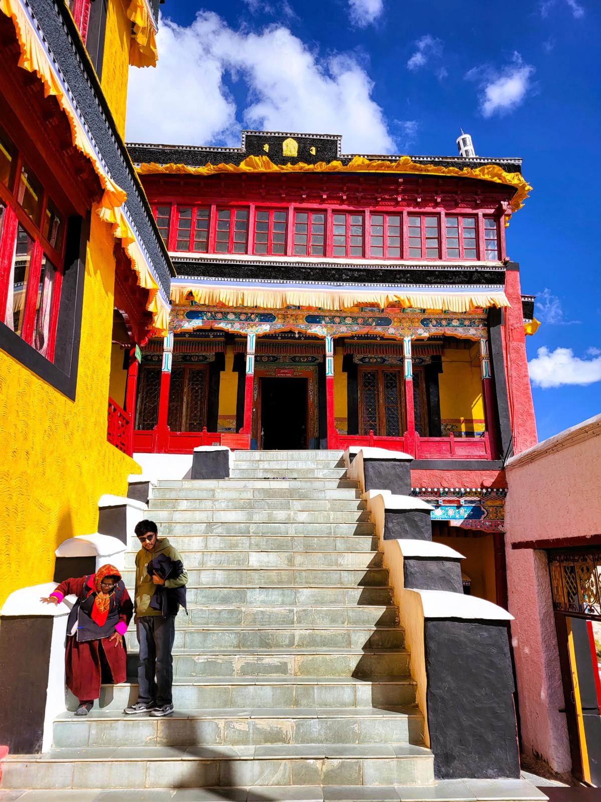En knallblå himmel og dramatiske fjell omkranser det fargerike Thiksey klosteret idet jeg går tilbake til bilen. Definitivt det vakreste klosteret jeg noen gang har besøkt. Her er det også mulighet for å komme tidlig om morgenen og være med på morgenritualene sammen med munkene. Bønn, chanting og meditasjon for den som ønsker, eller bare være stille iakttager til en spirituell verden i Himalaya.