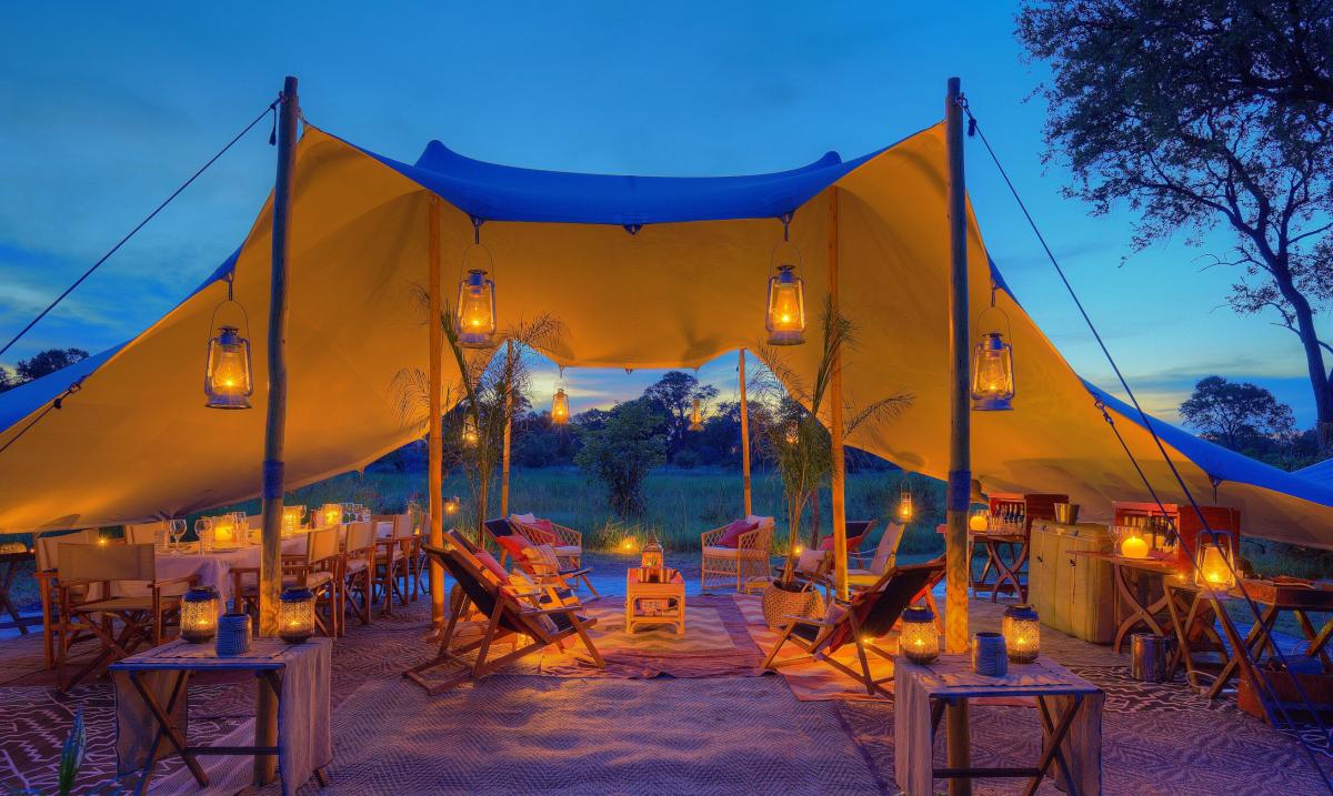 Det er som å være stand in for Robert Redford og Meryl Streep i Out of Africa. I en camp i Okavango-deltaet som er så tett på villmarken at du må være et tre eller et dyr for å komme nærmere … Telt fra svunnen tid, men allikevel så glamping og luksuriøst som man kan få det. En varm gjestfrihet fra de som tar vare på deg her ute i bushen. Og matopplevelser som får deg til å lure på hvordan det er mulig … in the middle of nowhere.