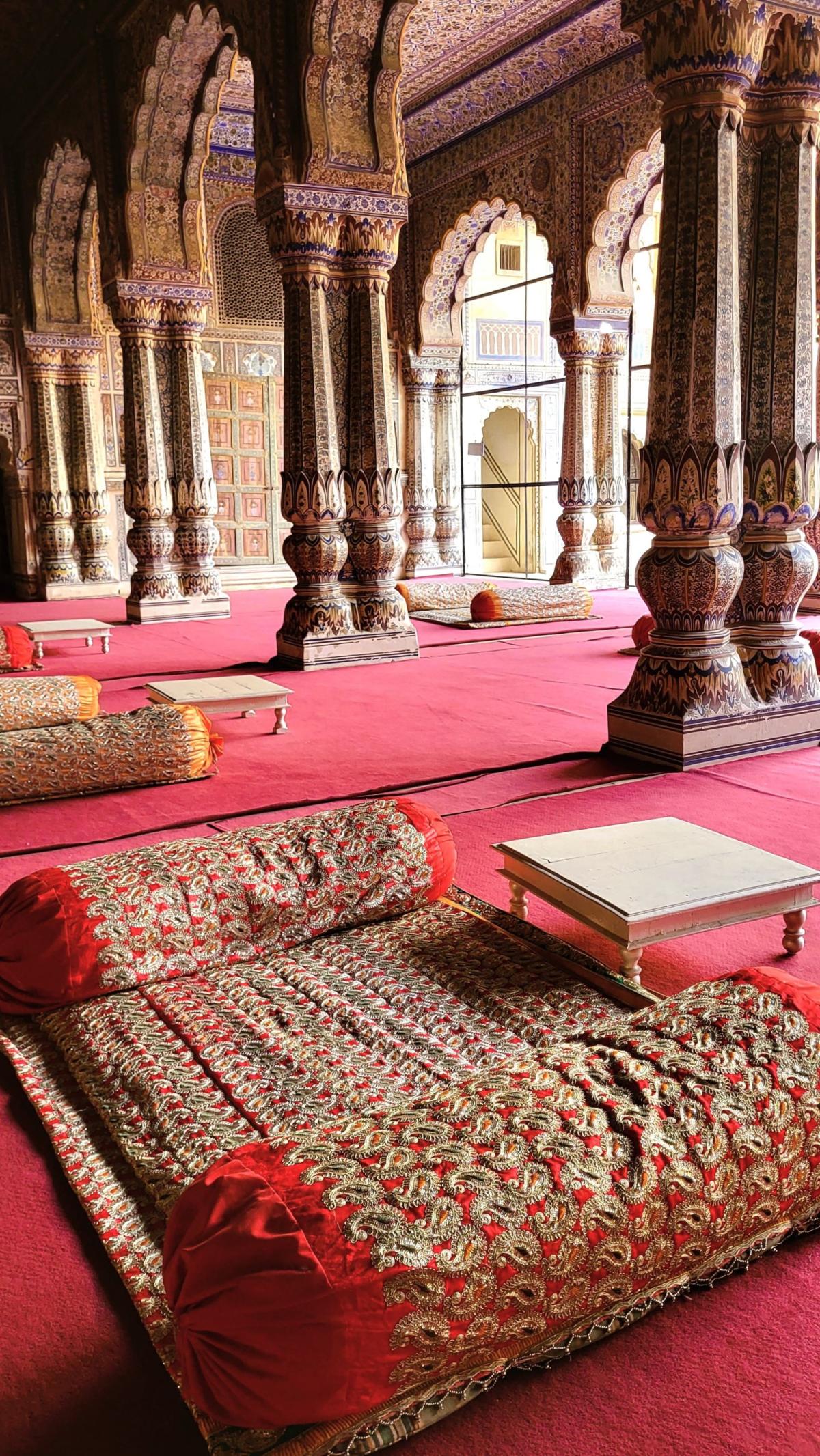 Så selve palasset. For et eventyr. Jeg har vært på City Palace i Jaipur. Fantastisk flott og pusset opp etter alle kunstens regler. Men stappfullt av turister, og absolutt ingen nær og autentisk opplevelse. La’mme er antagelig den eneste turoperatøren i Norge og kanskje også i Europa som dropper både Jaipur og Taj Mahal på sine reiser til India. Dit drar alle, men det handler mest om flotte byggverk hvor man står og går i kø og hvor man blir hauset gjennom for å gjøre plass til neste turistgruppe. For min del blir derfor det unike og ekte borte. Og historiefortellingen forsvinner i stress og kaos.