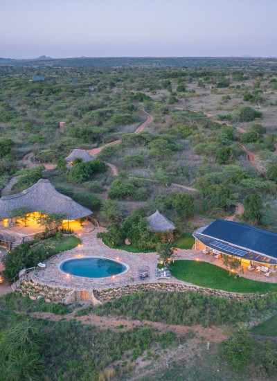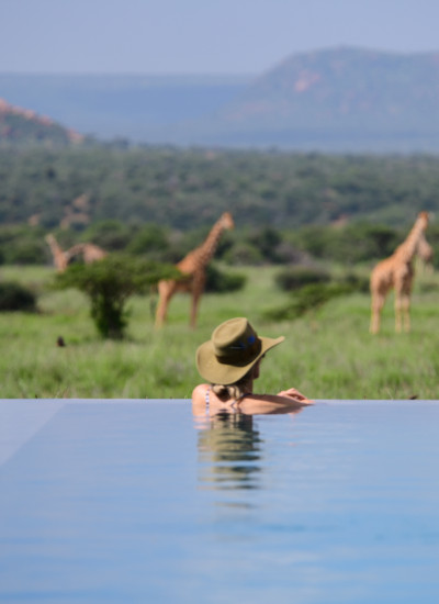 En camp in the middle of nowhere. Det tidligere hjemmet til Jamie og Kerry, eierne av Karisia Walking Safari. Kun syv telt. Du har det som plommen i egget, og fra det store svømmebassenget har du panoramautsikt til dyrene i Afrika.