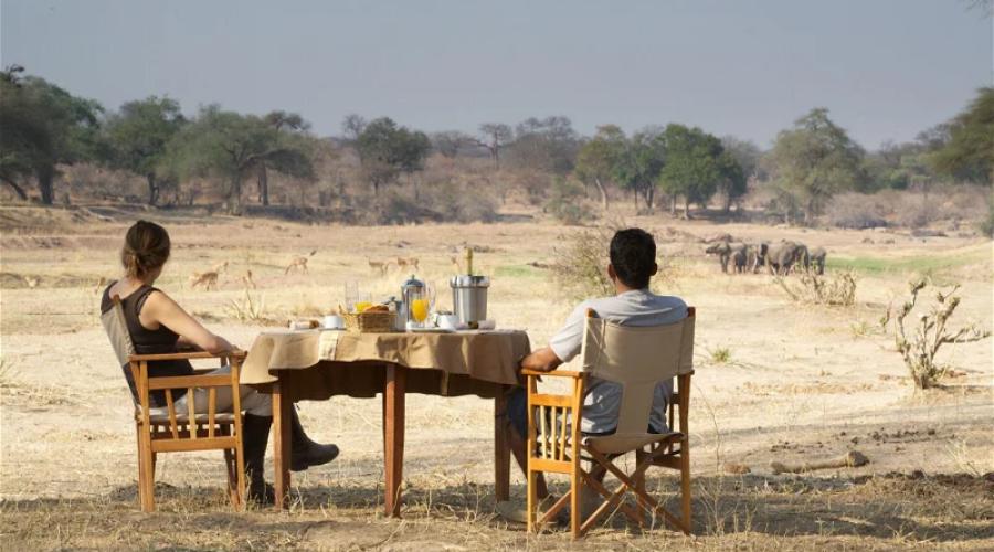 Rufiji River Camp har en misunnelsesverdig beliggenhet høyt oppe ved bredden av den store Rufiji-elven. Spektakulære solnedganger akkompagneres av gryntende flodhester og en kakofoni av fuglesang. Her bor du bra og safarien er ikke over, selv om du er tilbake i campen etter endt game drive.