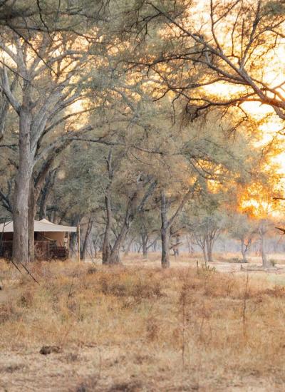 Kulandila betyr velkommen. Intimt med bare fire telt på en forhøyet terrasse. Egen veranda. Innendørs bad, utendørs badekar. Svømmebasseng og utsiktsdekk. Vidstrakt utsikt over Luangwa-elven. Hjemmet til vandringssafari. Vekk sansene og bli en del av naturens rytme.