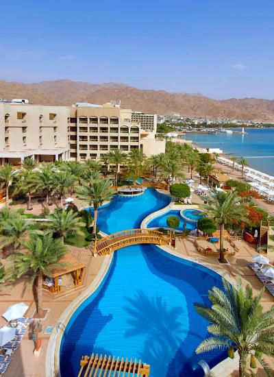 Luksuriøst og stort hotell beliggende med utsikt over Aqaba-gulfen og Rødehavet. Alle rommene er romslige og har gulv-til-tak-vinduer samt balkong. Utendørsbasseng, stort spa og privat strand.