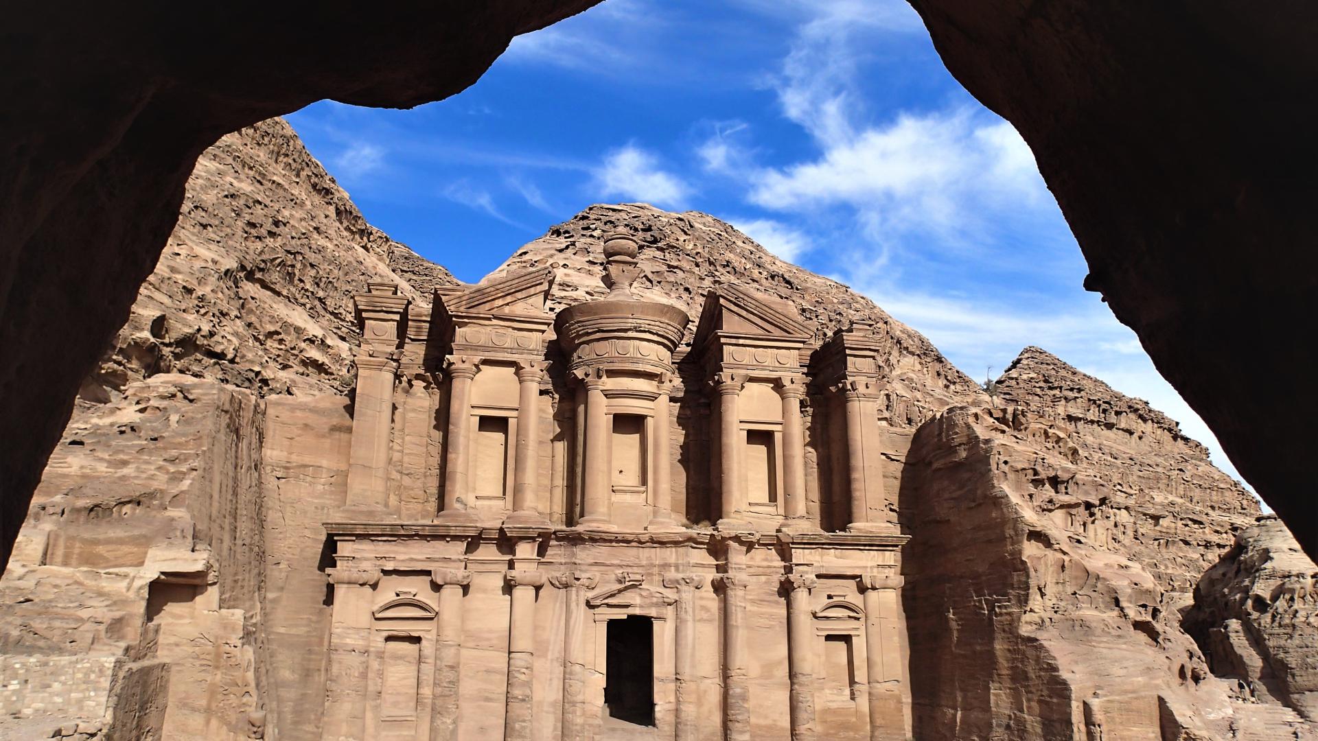 «Petra» betyr «klippe» på gresk, og det er nettopp klippene som gjør Petra så unik. For 40 millioner år siden trakk vannet seg tilbake og blottet et landskap av hvite, gylne, rosa, lilla, blå, røde og gråbrune sandstensklipper. For 2500 år siden slo de nomadiske nabateerne seg ned og ble rike på handel med krydderier fra India, silke fra Kina og røkelse og myrra fra de arabiske statene. De etterlot seg hundrevis av monumenter hugget ut i klippene. Monumentenes fine detaljer avslører inspirasjon fra både egypterne, grekerne og romerne, som nabateerne møtte i handel og krig.