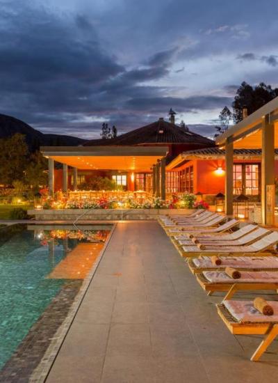 Midt i hjertet av Inkaenes hellige dal finner du Hotel Sol y Luna, sol og måne. Omgitt av majestetiske fjell, i en frodig jordbruksdal med inkaruiner rett rundt hjørnet. Hotellet er en eksotisk og luksuriøs oase dottet med lave bungalower, hvis arkitektur er en hyllest til gamle inka-konstruksjoner.