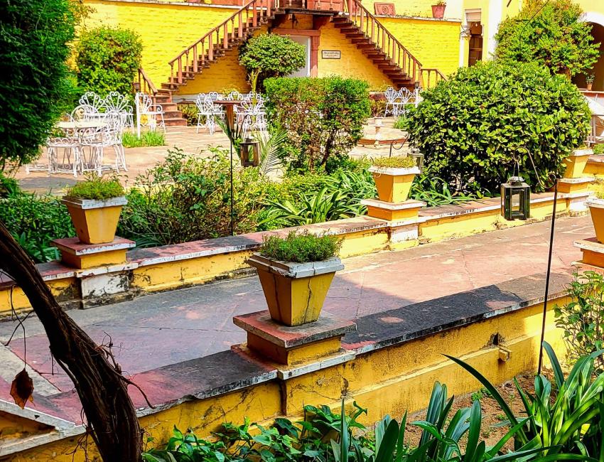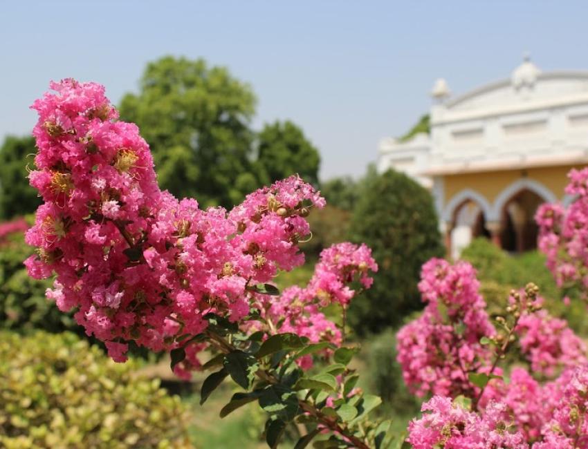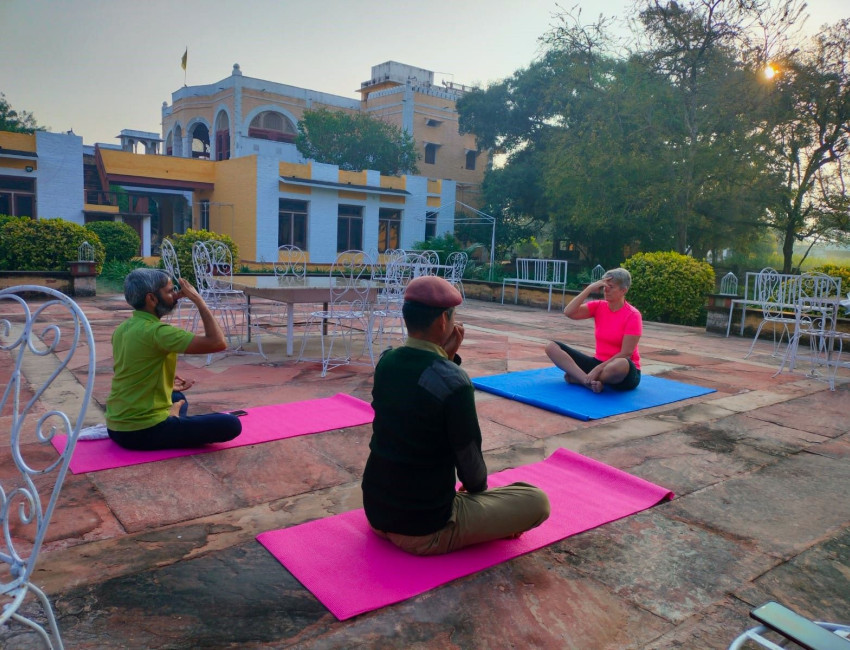 Det er «pakka». Det vakre art deco og orientalskinspirerte palasset fra 30-tallet. Det er ikke luksuriøst, men med en rustikk sjarm som sammen med historiefortellingen trollbinder meg. Det er gårdsplassen som er selve oasen og palassets hjerte. Det er følelsen av å høre til og være velkommen. Det er måltidene som inntas under stjernehimmelen. Det er hagen med stiene, «rommene», blomstene og påfuglene. Det er roen og solnedgangen. Det er menneskene som bor og jobber her. En varm og gjestfri fyrstefamilie, hotellansatte som ikke vet hva godt de kan gjøre for meg, og ansatte på gården som inviterer meg med til å delta i gårdslivet. Det er yogatimene i soloppgang. Men aller mest er det energien. Fredfull. Et sted det bare er godt å være til.