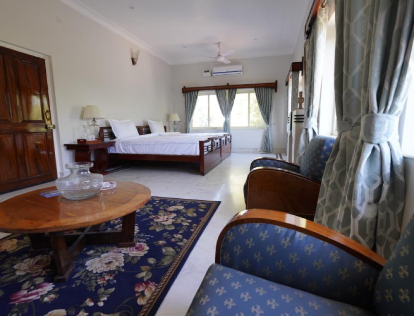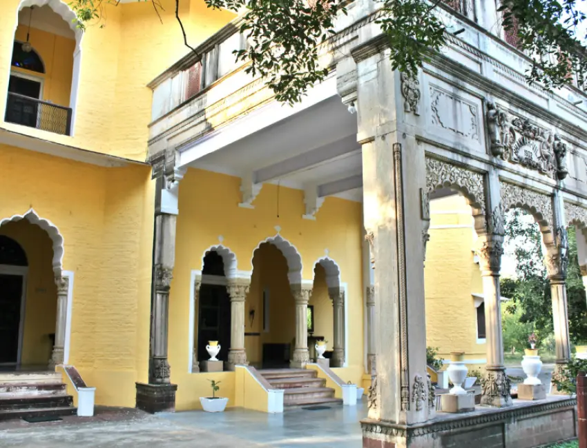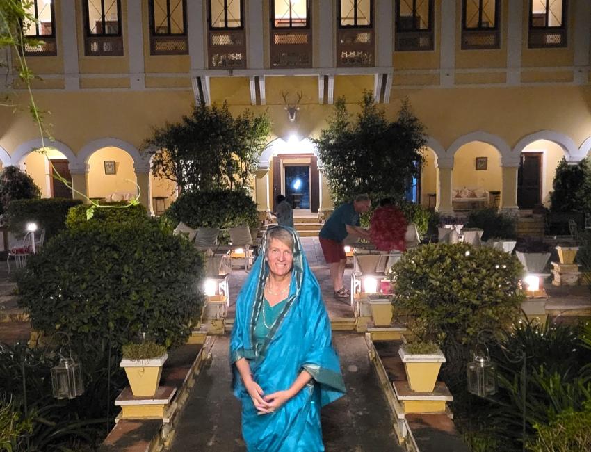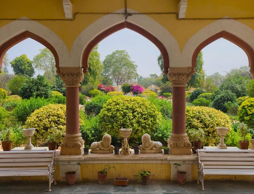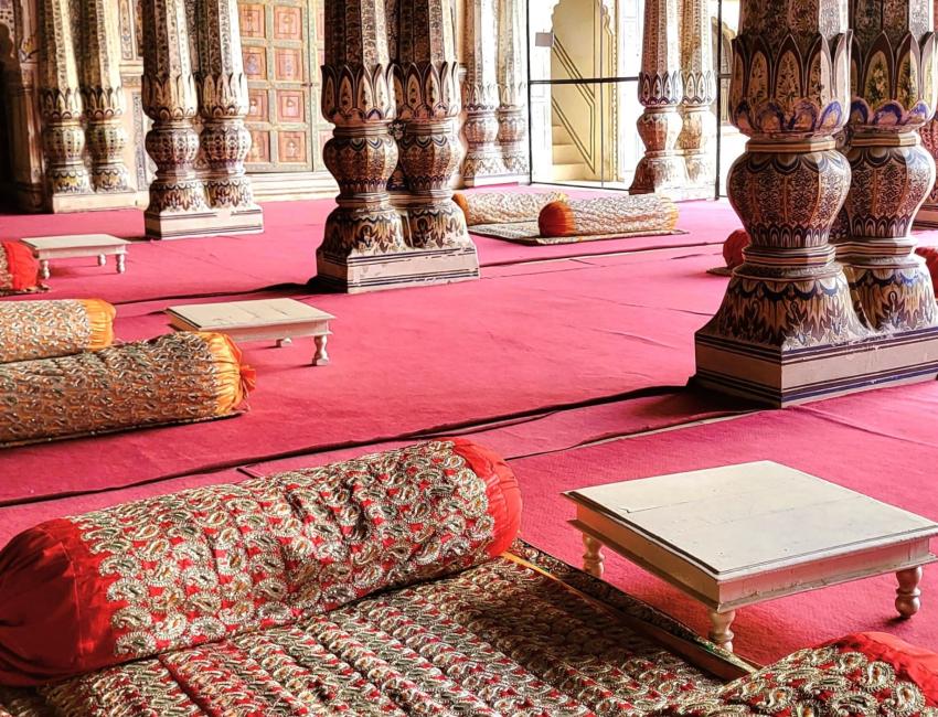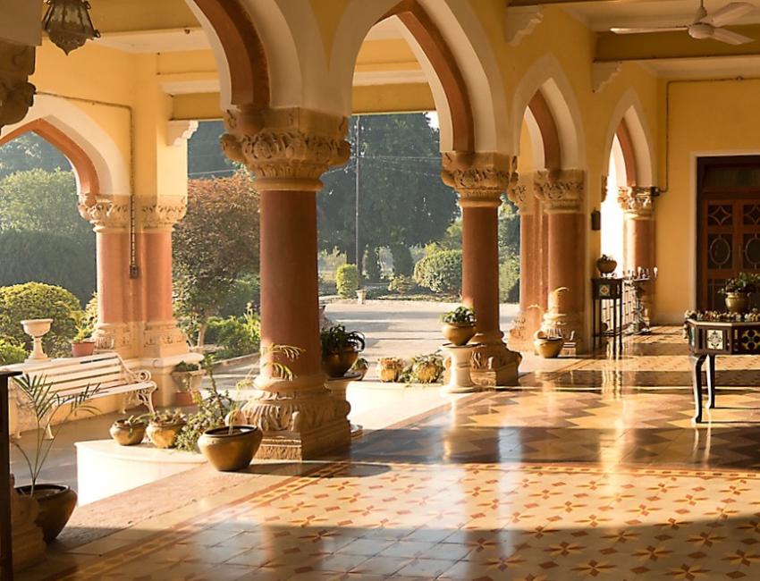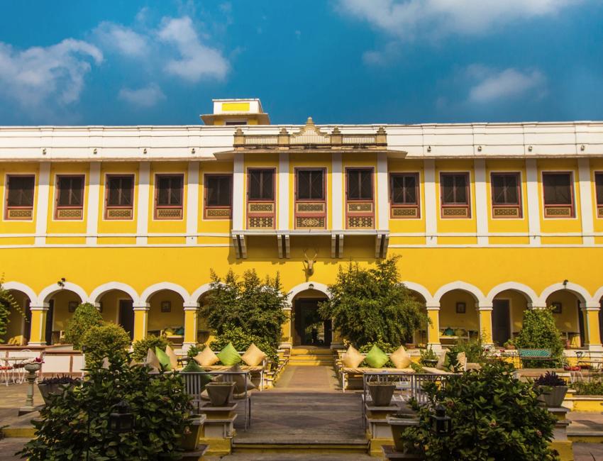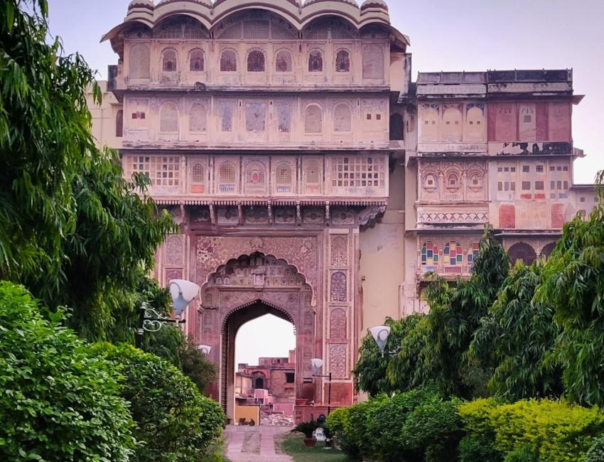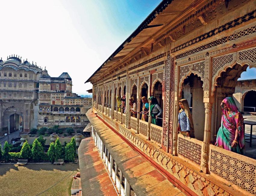 Et lite fyrstepalass, men også et heritage-hotell, hvor livet leves tett på det ekte, jordnære og fargerike Rajasthan, samtidig som det er historie og stas i hver en krik og krok.
