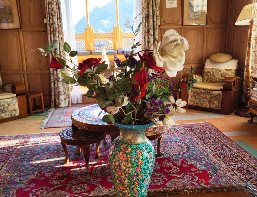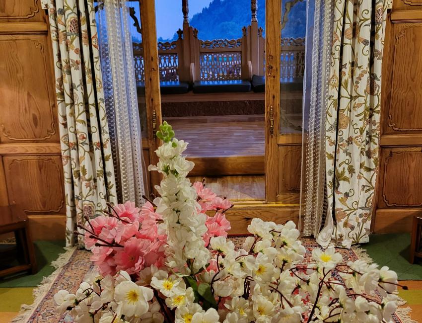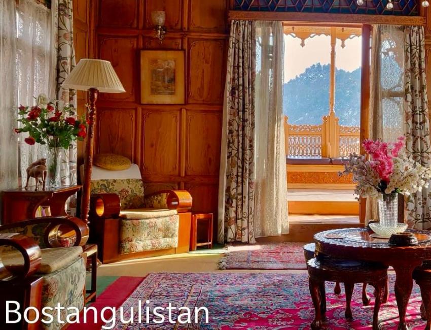 Bostan har flere husbåter som ligger ved siden av hverandre med fin beliggenhet i Dal-innsjøen ved Srinagar. Alle med samme høye standard og til sammen 24 rom. Cedertre, teak, utskjæringer, store og fargerike vaser av pappmasje, lysekroner og Kashmir-tepper på gulv. Staselig rett og slett. Om morgenen og ettermiddag/kveld satt jeg på verandaen og så på livet på innsjøen. Et fascinerende teaterstykke i flere akter.
