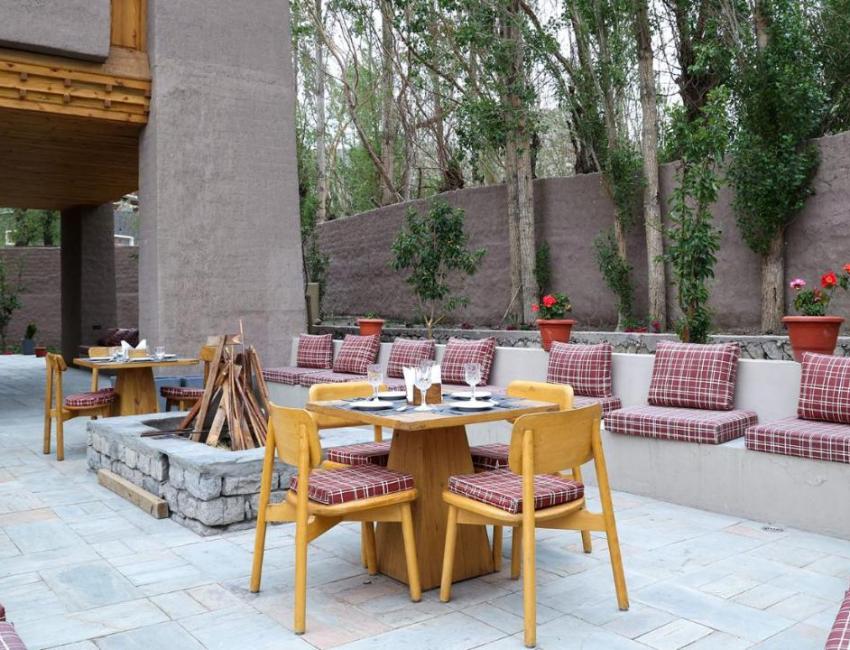Hotel Chospa er en fredens oase midt i det pulserende sentrum av Leh, på Old Leh Road. Her er tradisjonell ladakhisk arkitektur og byggemåte forenet med det moderne. Det føles nesten som man trer inn i naturen når man kommer inn i dørene. Jordfarger og lek med lys fra vinduer og lamper. Atrium og krydring med fargesterke tepper, bilder og puter. Hotellet har restaurant og bakeri/café i bakgården. De ansatte opplevdes som varme og gjestfrie.