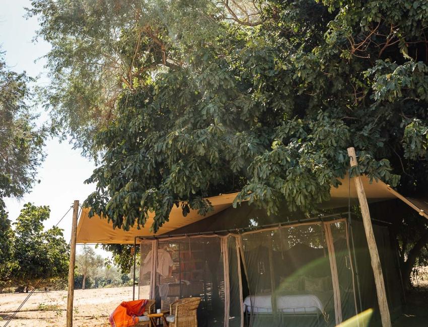 Chula island Camp er søster-campen til Kutali Camp. Omgivelsene på Chula er veldig forskjellig fra Kutali. Omgitt av mahognitrær og sandstrender. En perfekt kontrast til Kutali. Teltene er av samme type som på Kutali. Du har privat baderom med vannklosett, bøtte-dusj og vask med speil. Sengetøy og madrasser er av høy kvalitet. Alt hva man egentlig trenger for å ha det som plommen i egget. Sammen med nydelig mat og entusiastiske og meget kunnskapsrike drivere i Luke og Kyle, er stemningen satt. Good vibes only! Her ligger alt til rette for vandresafari, kanoturer, båtsafari, tigerfiske og game drives.
