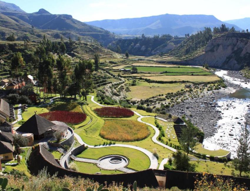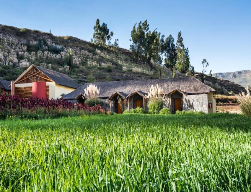 Ved bredden av Colca-elven, omgitt av hundrevis av pre-inkaterrasser ligger denne koselige lodgen som har sin helt unike stil. Bygget av leire, stein og halm smelter natur og bygninger sammen. Tett på naturen kan man trygt si, og i en fredfull og avslappet atmosfære.