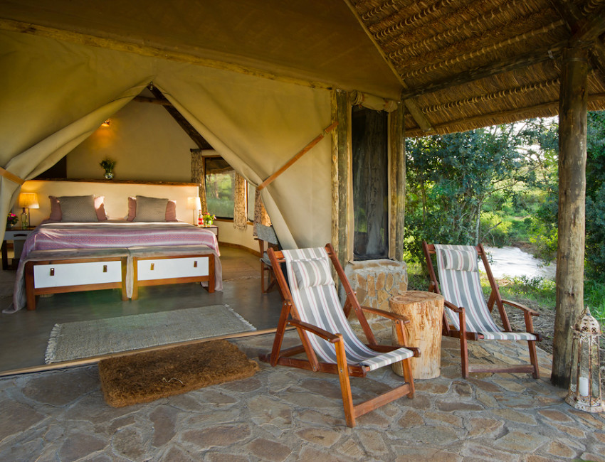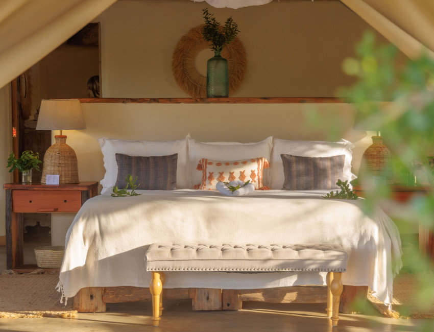 Du kan også go wild og bo i eksklusive telt ute i bushen. Her er det kun én gruppe av gangen. Miniumum fire voksne, maksimum ti. Dette er for den eventyrlystne som ønsker å virkelig fordype seg i både natur og dyreliv. En helt unik opplevelse.