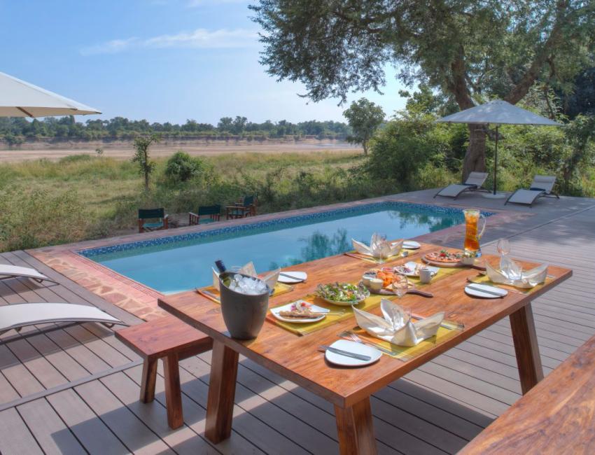 Jeg var litt skeptisk til å bo utenfor nasjonalparken etter dager med spinnville og "remote" dyre- og naturopplevelser inne i najonalparken. Jeg ble til og med litt snurt når jeg fikk tildelt en "chalet/hytte" og ikke telt. Hvem vil bo i hytte på disse trakter liksom? Ikke jeg. Det var helt greit, men jeg anbefaler definitivt å bo i telt. Luksuriøst og koselige nede ved elven. Er dere en familie eller vennegjeng, gå for Jackalberry House eller Crocodile Nest. AMAZING beliggenhet og arkitektur! Og maten. De har faktisk en restaurant. Den eneste tror jeg i området. Knallgod mat og god stemning. Det var deilig å slappe av ved bassenget med en Mosi.