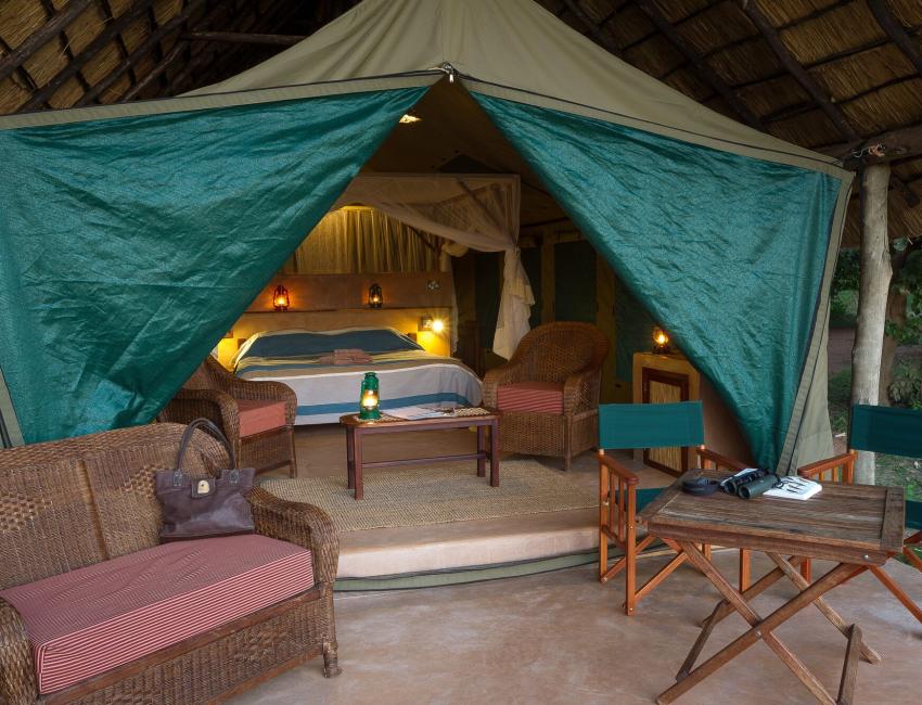 I tillegg finnes det syv flotte safaritelt med eget bad og utsikt over elven. Sistnevnte gir kanskje den mest autentiske bushopplevelsen.