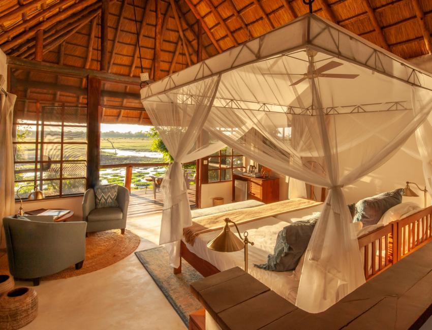Det er åtte hytter og to luksus suiter som til sammen har 24 sengeplasser. Hyttene har tregulv og trevegger med stråtak. Lodgen ble renovert i 2019. Her finnes også et spa og et gjemmested hvor du kan følge med på dyreaktiviteten.