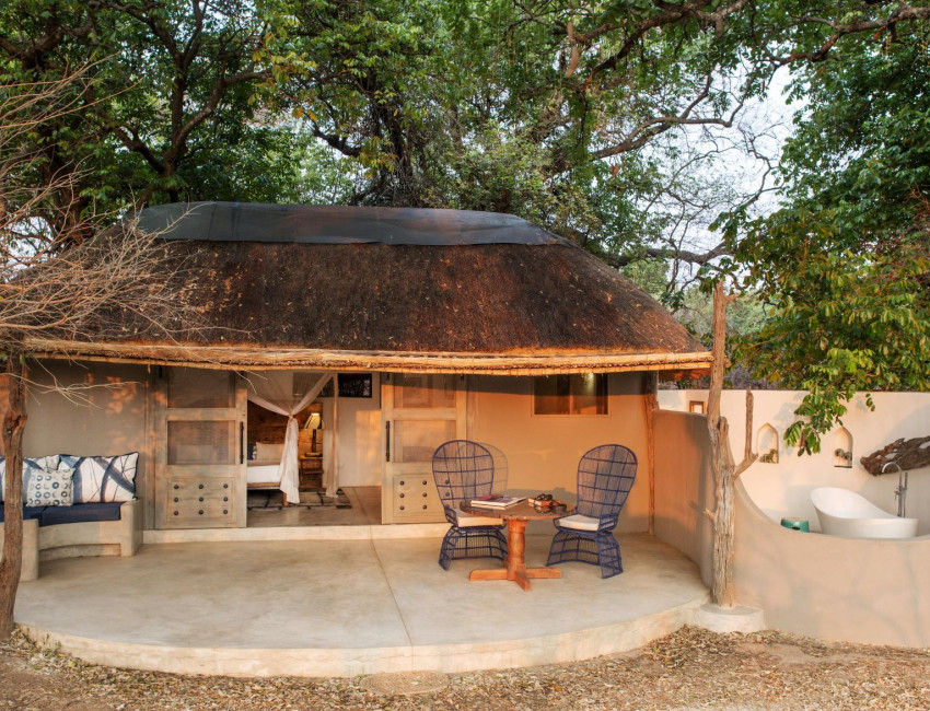 Spesielt husker jeg frokosten rundt bålet med utsikt ned mot Luangwa-elven. Øyeblikk for minneboka mi, helt klart. Når man ønsker tid for seg selv, kan man nyte utsikt og ro fra stolene som står på en platting mot elven. utenfor hver hver av de seks små hyttene. For min del ble det ikke mye ro. Jeg fikk nemlig besøk av en gjeng med små apekatter.