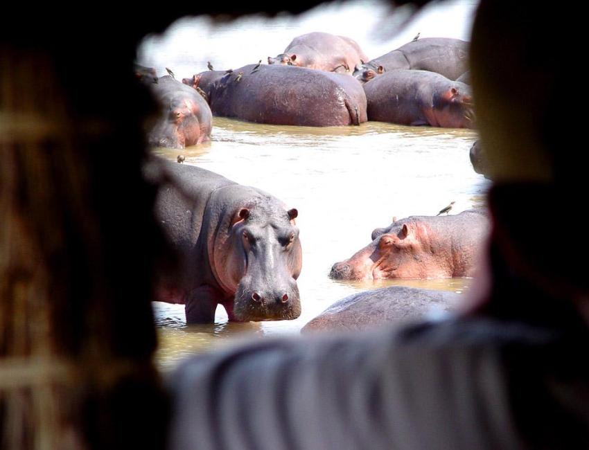 Derek Shenton, med svenske aner, har bygget flere såkalte "hides" som har blitt en del av leiren. Det hele startet med et fantastisk hippo hide som ble hugget ut i elvebredden oppstrøms fra leiren. Her kan gjestene sitte i ro og mak og iaktta alle flodhestene som har sitt hjem her i elvesvingen. Dette skjulet (hide) har nylig blitt supplert med et elephant hide og også et skjul i nærheten av en sinoberbieter-koloni. Det er et fantastisk skue i september og oktober når disse fargesprakende fuglene hekker.