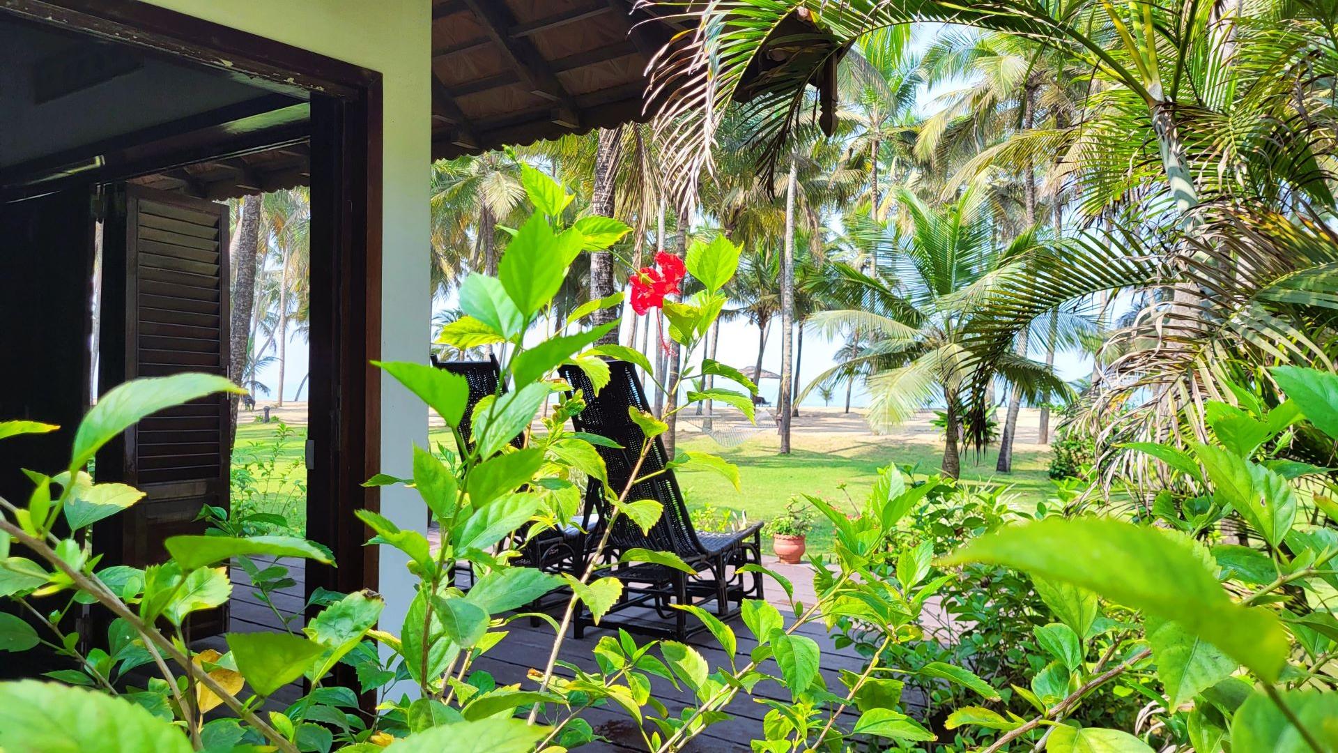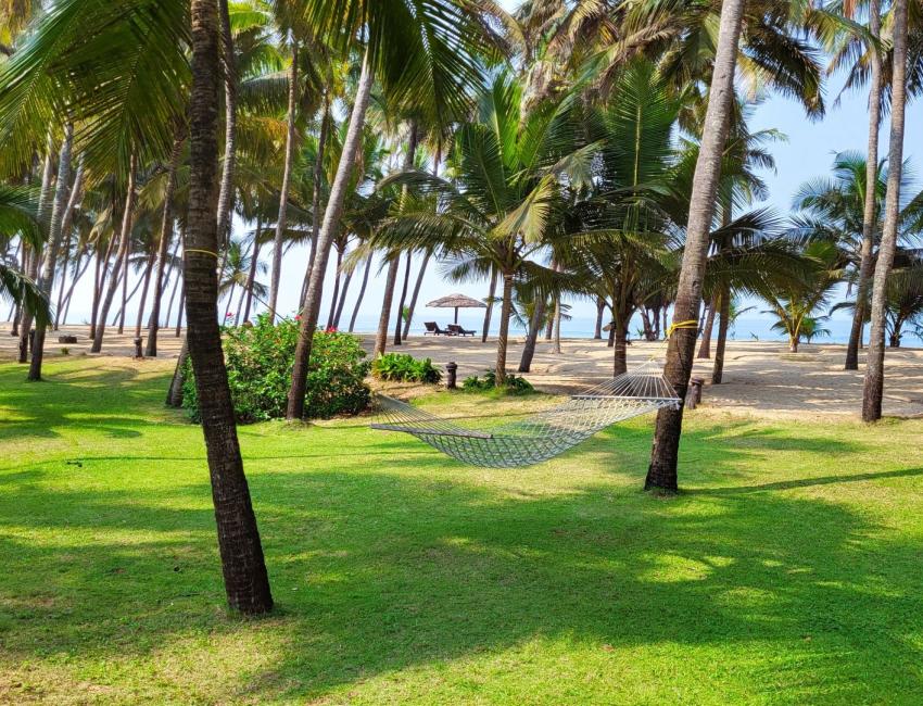 Resorten er nabo til Neeleshwar Hermitage og har like magisk beliggenhet ved stranden. Det er 10 romslige bungalower i den store hagen, alle med oppholdsrom, soverom, garderobe og bad. Det beste av alt er at du kan åpne to av veggene på bungalowen med skyvedører slik at inne blir ute, på en måte. Det finnes også familie-bungalower med flere soverom. Når du våkner er det bare å skyve dørene til side og du kan ligge i sengen og se på palmene, himmelen og stranden som er bare noen meter unna. Terrassen foran bungalowen er perfekt lokasjon til å nyte morgenkaffen eller en sundowner mens du hører på bølgeskvulp fra stranden. Eller ta ettermiddagsluren i hengekøyen mellom to kokospalmer i den store palmehagen. Restauranten med utsikt til både svømmebasseng og strand serverer god, indisk mat.