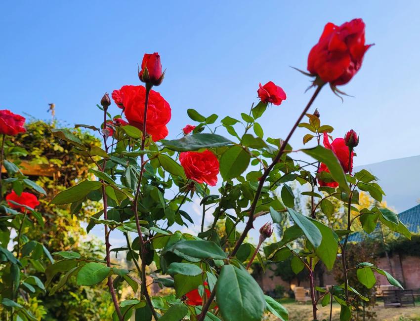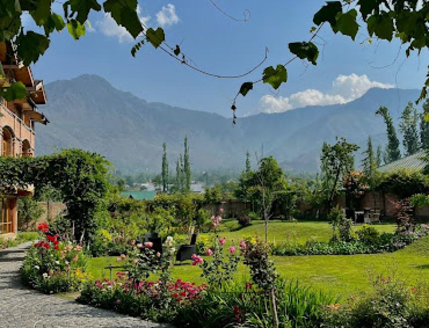 En halvtime nord-øst for Srinagar. Omkranset av vakre fjell. Der finner du en hage som bugner av blomster og fugler. Og i denne oasen ligger Nadis Hotel. Et ganske nytt hotell, men her er det allerede overflod av sjel, vakre detaljer, ekthet og gjestfrihet. Dette er som å komme hjem til venner.