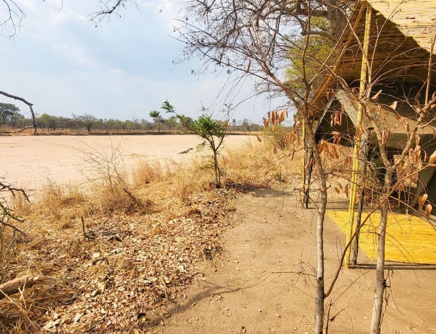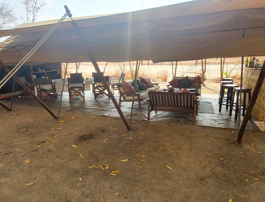 I fellesområdet ved elven finner du sofaer i skyggen av trærne. Her kan du slappe av, nyte stillheten og følge med på dyrenes aktivitet rundt leiren. Her samles som oftest Nkonzis gjester for å drikke te og kaffe rundt bålet om morgenen, og for en sundowner før middagen.