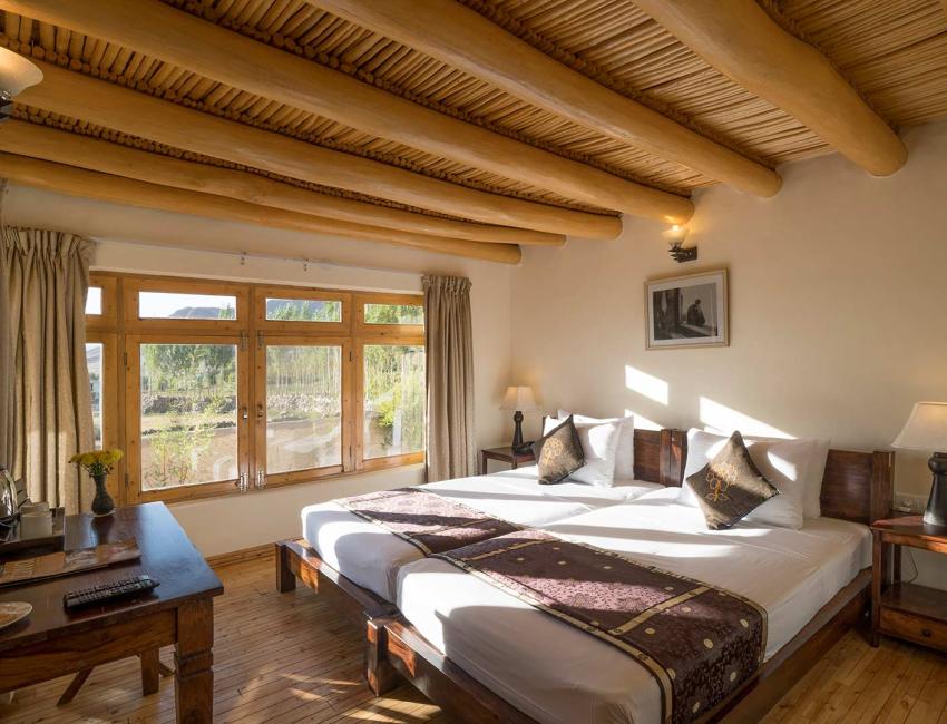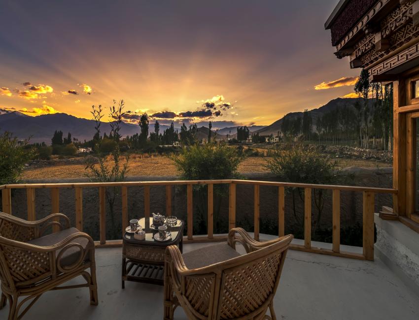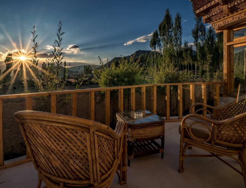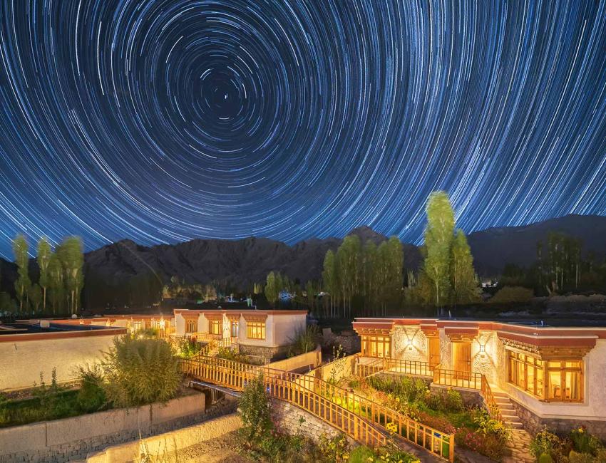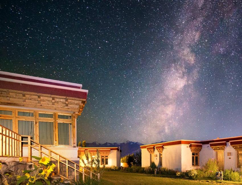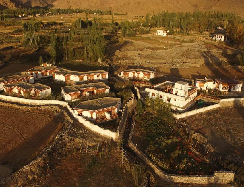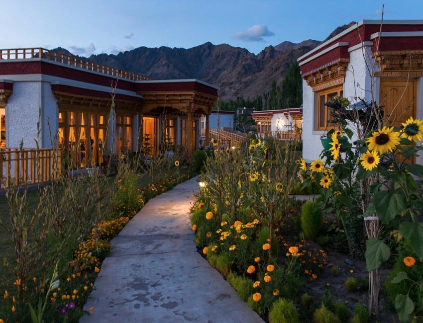 Saboo er en oase et kvarters kjøretur fra Leh. Omkranset av dramatiske fjell og utsikt over dalen er det naturen som spiller førstestemmen her. I den frodige hagen ligger 15 romslige hytter, alle med privat veranda. Resorten er kjent for god mat og varm gjestfrihet. Om kvelden er det gjerne samling rundt leirbålet for historiefortelling og stjernekikking. Stjernehimmelen er noe helt for seg selv på disse trakter.