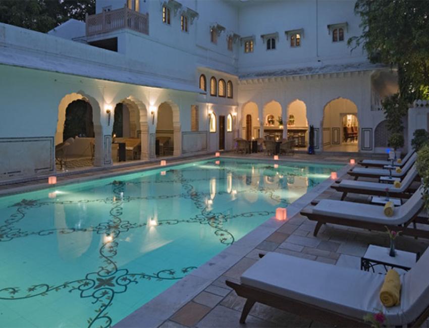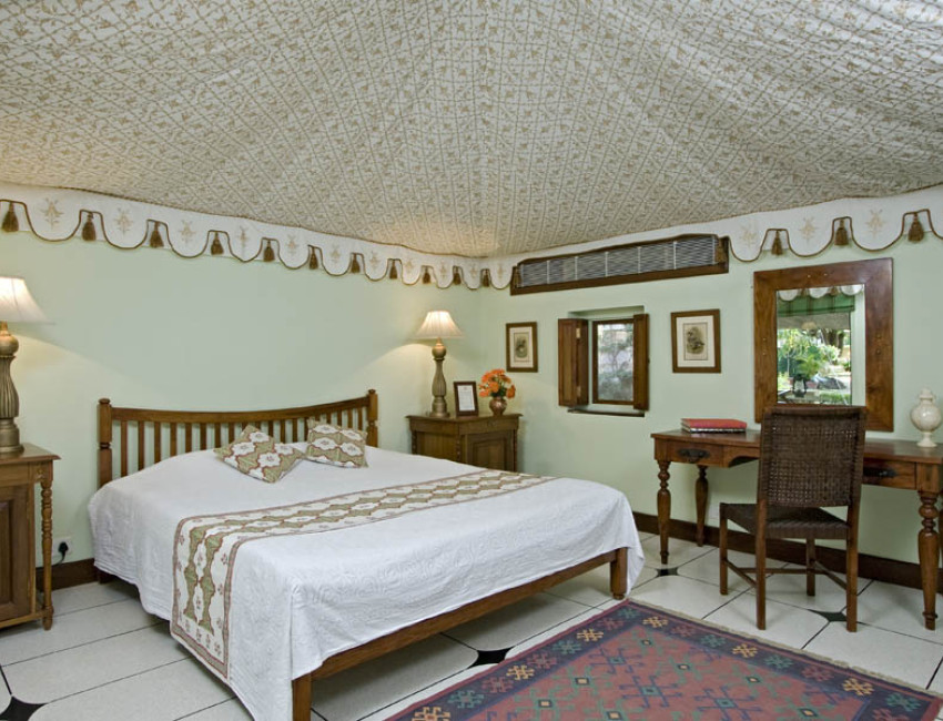 Maten er god og den serveres i et stort telt eller ved bassengkanten. Det er utallige piknik-muligheter i hagen. En perfekt plass om man reiser med barn, for her er det plenty med boltreplass. Det er også en bra beliggenhet for deg som vil utforske både landsby- og byliv i Rajasthan. Mange spennende utfluktsmuligheter venter rett utenfor hageporten og det er bare en time til Jaipur.