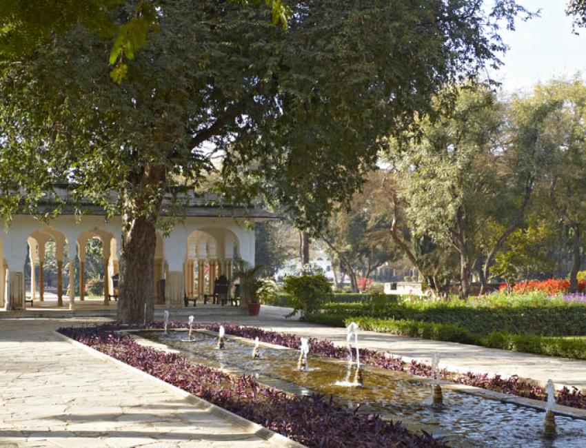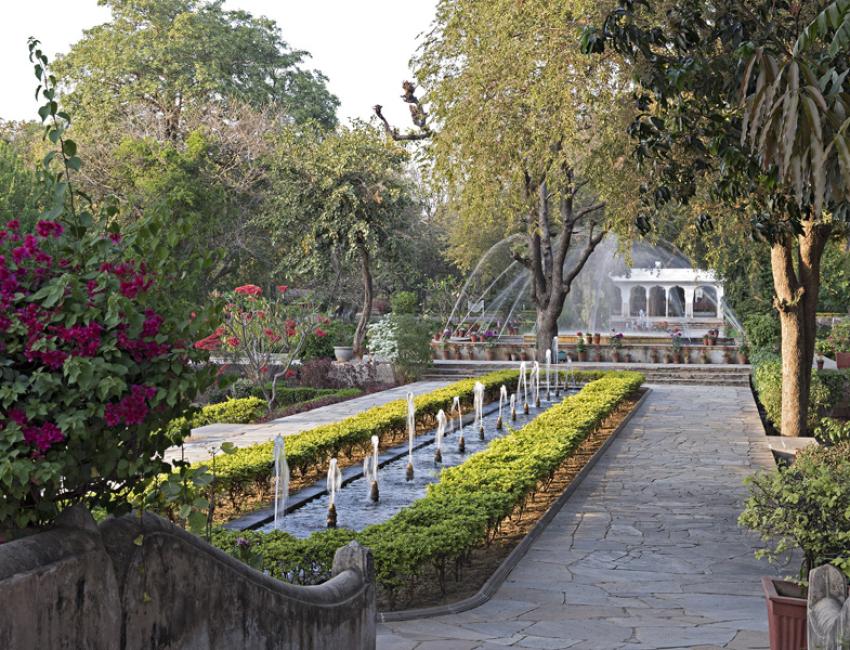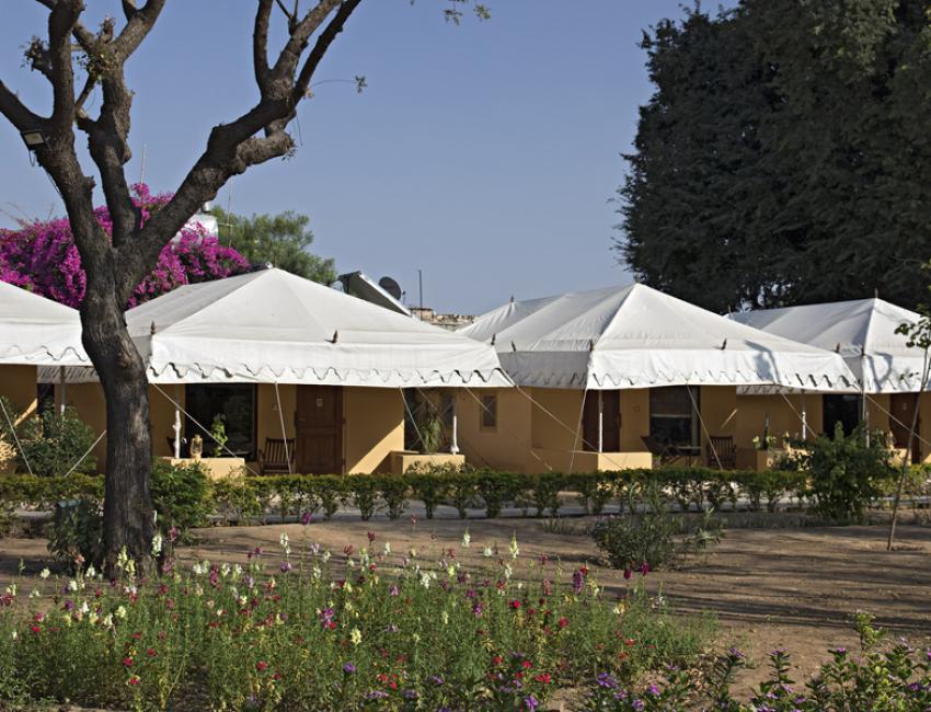 Bagh betyr hage. Samode Bagh er med andre ord hagen til maharajaen på Samode Palace, som ligger cirka fire kilometer unna. Dette er rett og slett en fyrstelig campingtur fra svunnen tid. Her kommer du til en 20 mål stor hage hvor det bugner av blomster, trær, fontener og vannveier. Det kan på en måte kalles glamping, for det er 44 romslige og velutstyrte telt med eget bad, omkledningsrom og veranda. Når jeg var på besøk holdt de på å ferdigstille nye rom i en hotellbygning på området, slik at det nå finnes et hotellrom-alternativ for de som ikke ønsker telt.