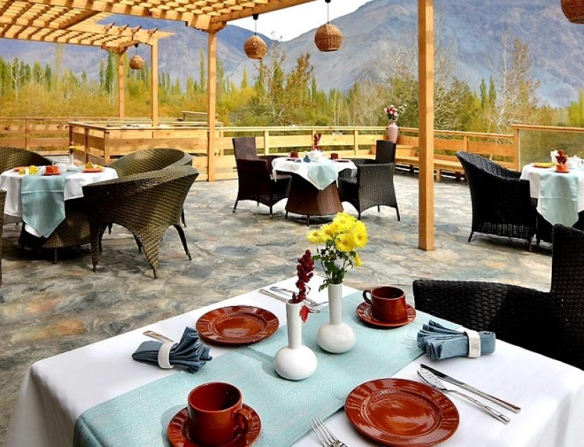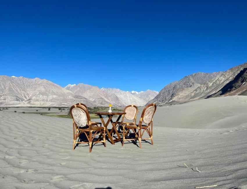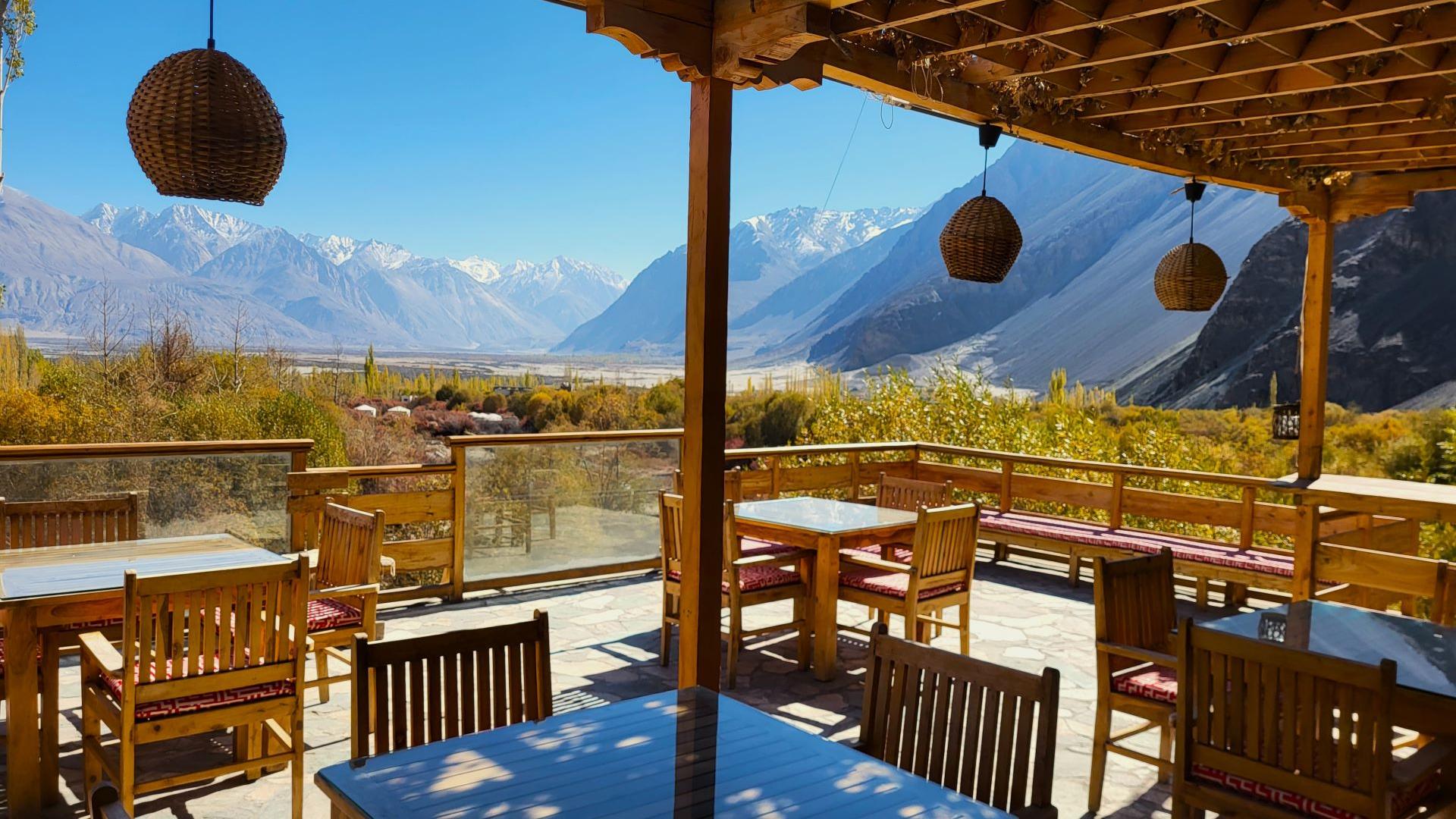 Fra takterrassen er det nydelig utsikt over Nubradalen. Her er det perfekt å sitte både på dagtid og kveldstid. Stjernehimmelen på disse trakter er nemlig ganske magisk.