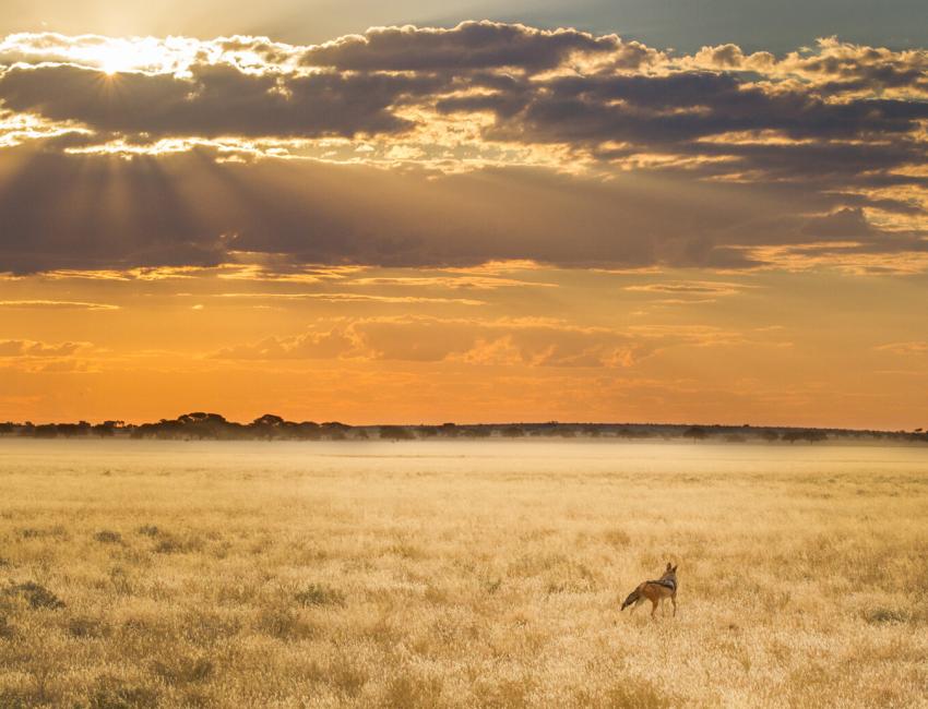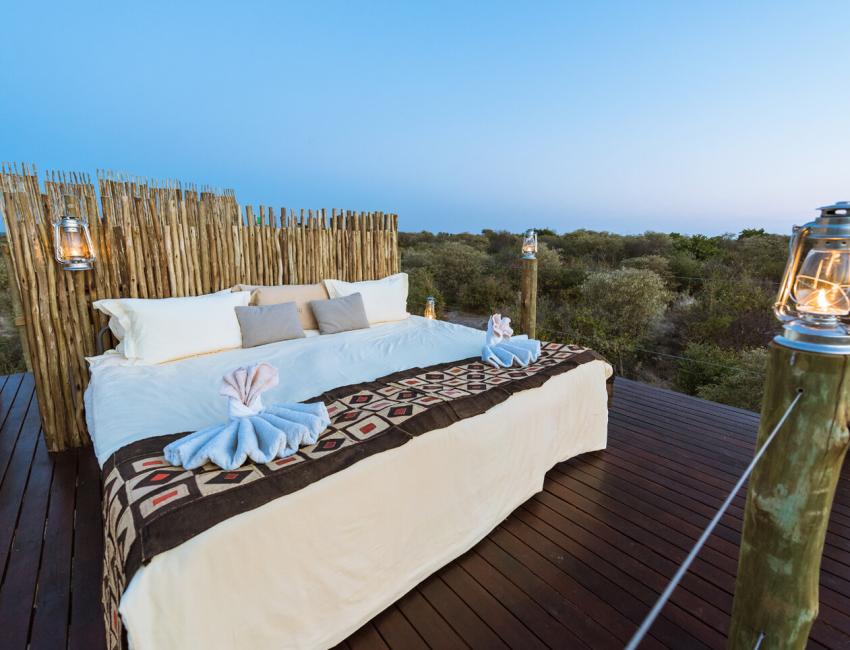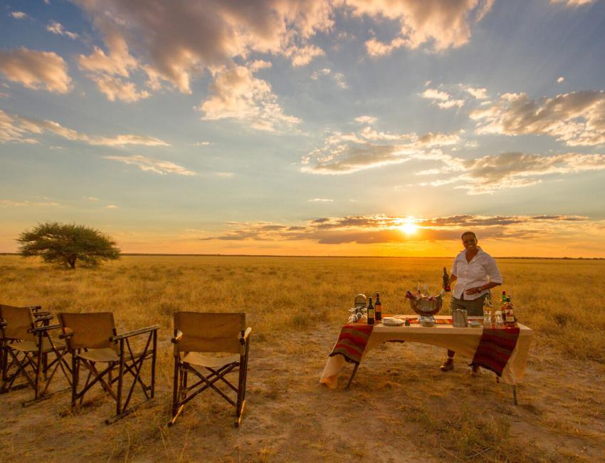 Tau Pan Camp ligger med en nydelig utsikt i det berømte Central Kalahari Game Reserve i Botswana. En nydelig oase i luksuriøse omgivelser. Nyt utsikten fra verandaen over det jadefargede busklandskapet og se om du får øye på dyrelivet som skjuler seg i buskaset. Campen har også en utsiktplattform med orkesterplass til vannhullet som tiltrekker seg masse dyr.