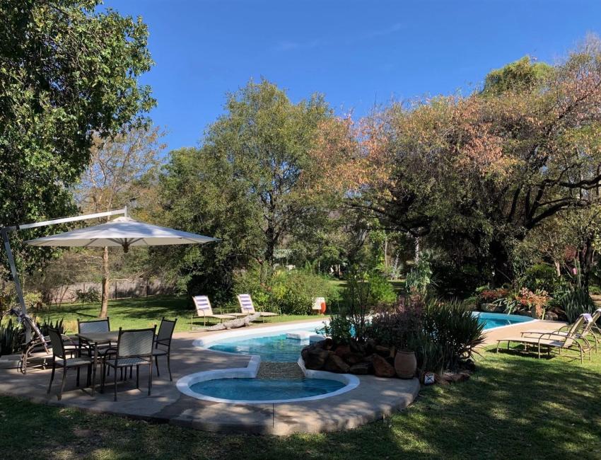Lodgen har stor hage, basseng og romslig restaurant og fellesområder.