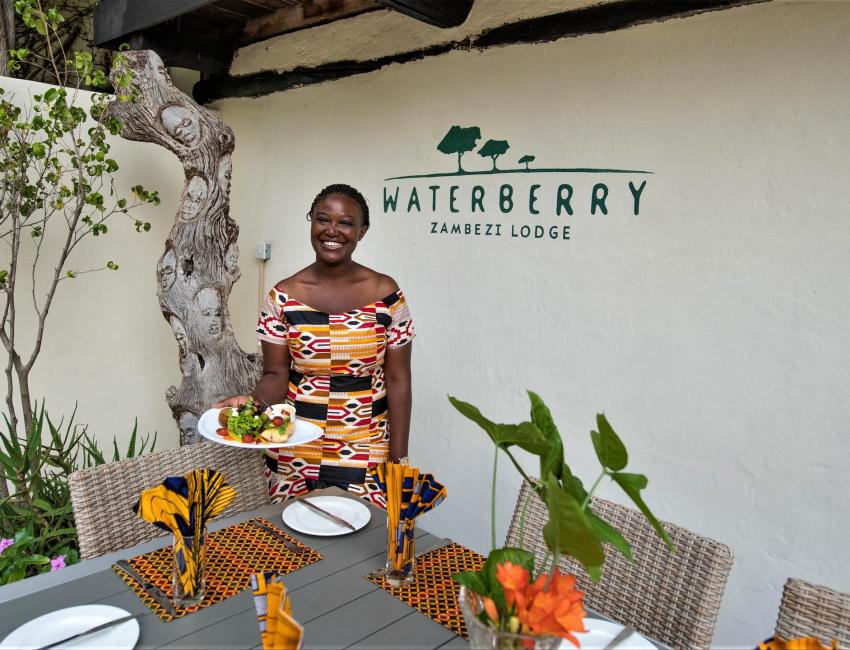Waterberry er eierdrevet og de bruker zambiske ferdigheter og en fantasifull kombinasjon av materialer for å skape en home away from home. Det har de i stor grad lykkes med da stedet er meget populært og får veldig gode tilbakemeldinger fra gjestene. Det er et av de mer budsjettvennlige stedene rundt Livingstone hvor man får god kvalitet og varm gjestfrihet til en god pris. Det er bare en av hyttene som ligger ved elven. De andre ligger i hagen litt tilbaketrukket fra elven.