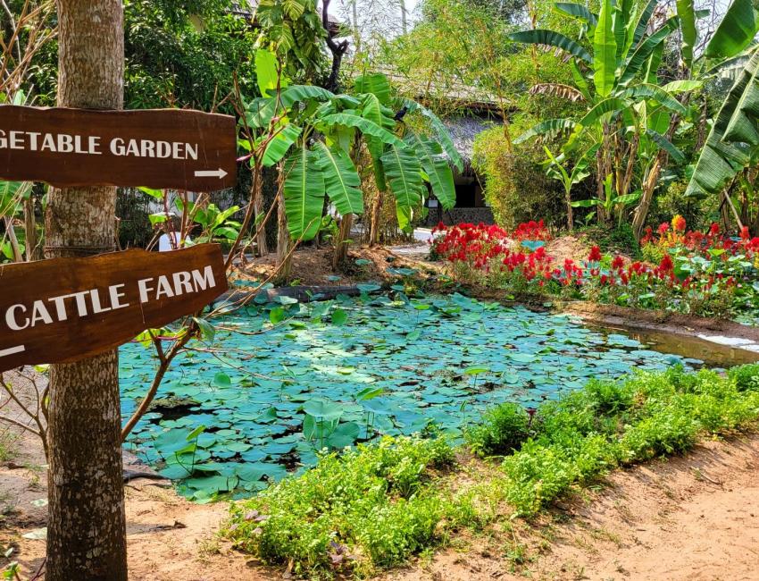 Xandari har fokus på kortreist og organisk mat, så her er det fra jord til bord som gjelder. Gården med dyrene ligger like ved, men du merker dem ikke dersom du ikke går på besøk. Hagen bugner av grønnsaker og fruktplanter, ris- og banantrær. De har også en egen sommerfuglhage. Det er balsam for sjelen å vandre rundt i disse omgivelsene. En eksplosjon av farger og naturens lyder. Blomster, trær, frukt, grønnsaker, dammer og innsjø, sommerfugler og fugler i skjønn forening.